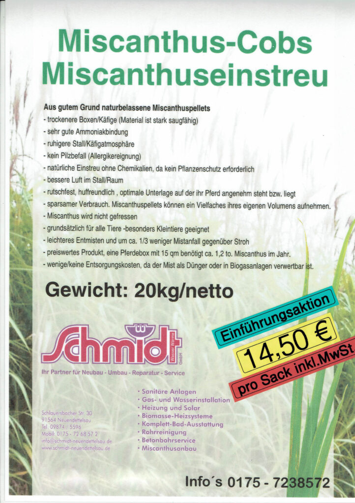Miscanthus ist als Riesen-Chinaschilf/Elefantengras bekannt und eine bedeutende Energiepflanze. Sie bietet aufgrund ihres hohen Brennwertes und günstigen Kohlendioxidbilanz optimale Voraussetzungen zur Verwendung als nachwachsender Lieferant von Biomasse, Brennstoff, Baustoff oder Einstreu in der Tierhaltung.